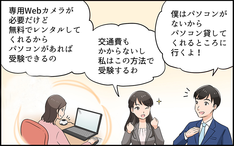 オンライン試験は、以前は誰も見ていないので不正行為もし放題でしたが、最近はWEBカメラで監視するタイプのオンライン試験も増えてきました。